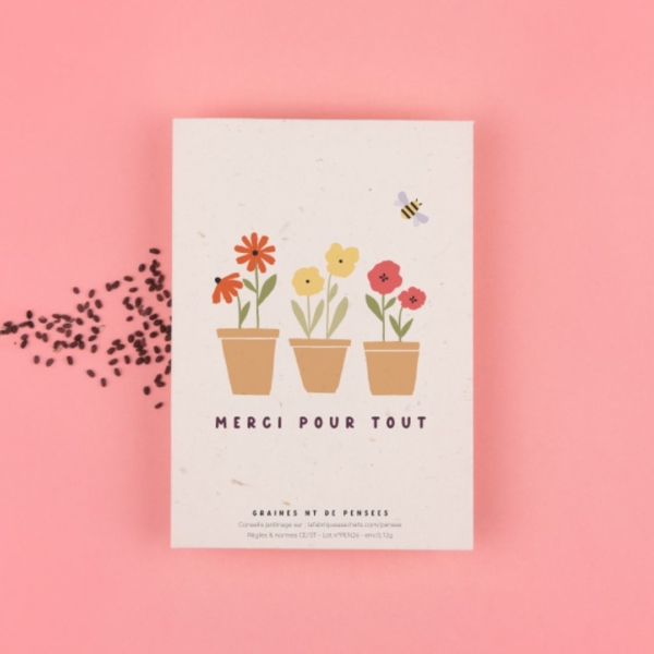 Parce qu’elles incarnent toute une symbolique, les graines à planter s’associent aux félicitations de mariage pour faire fleurir l’amour des jeunes époux. En plus, toutes les graines que nous choisissons sont appréciées des abeilles, mais également biologiques et reproductibles.